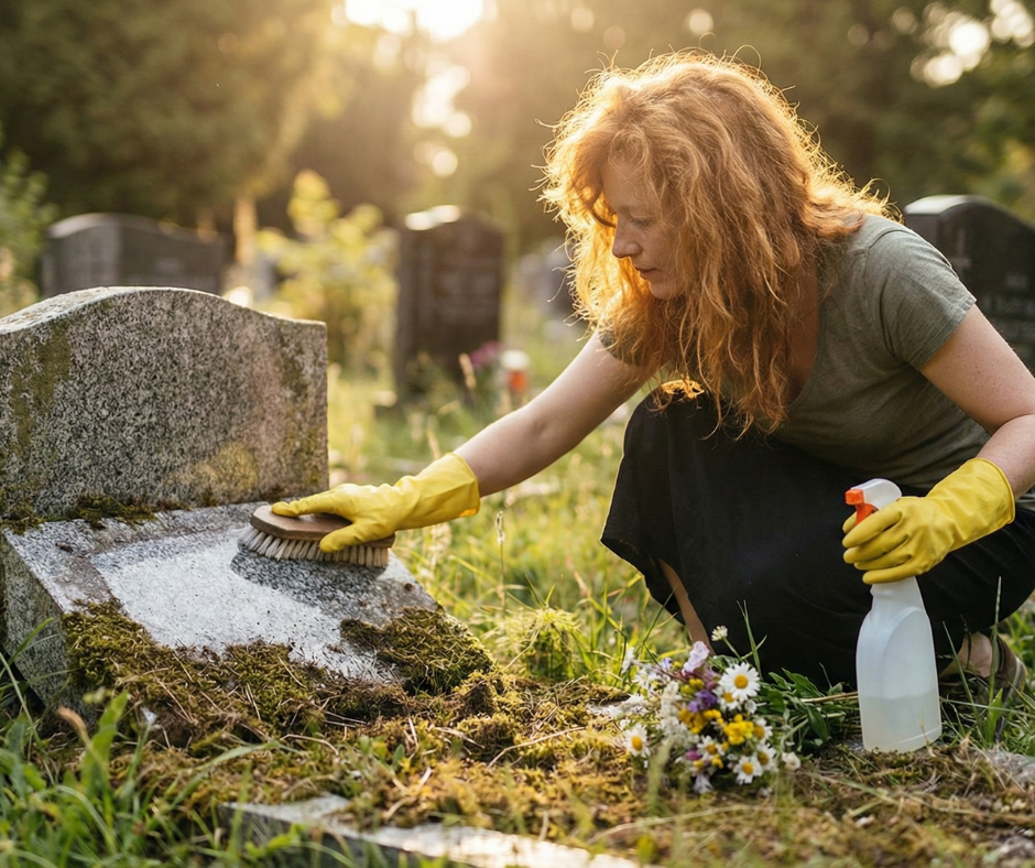 ✔ Gentle headstone cleaning (non-abrasive, eco-friendly solutions)